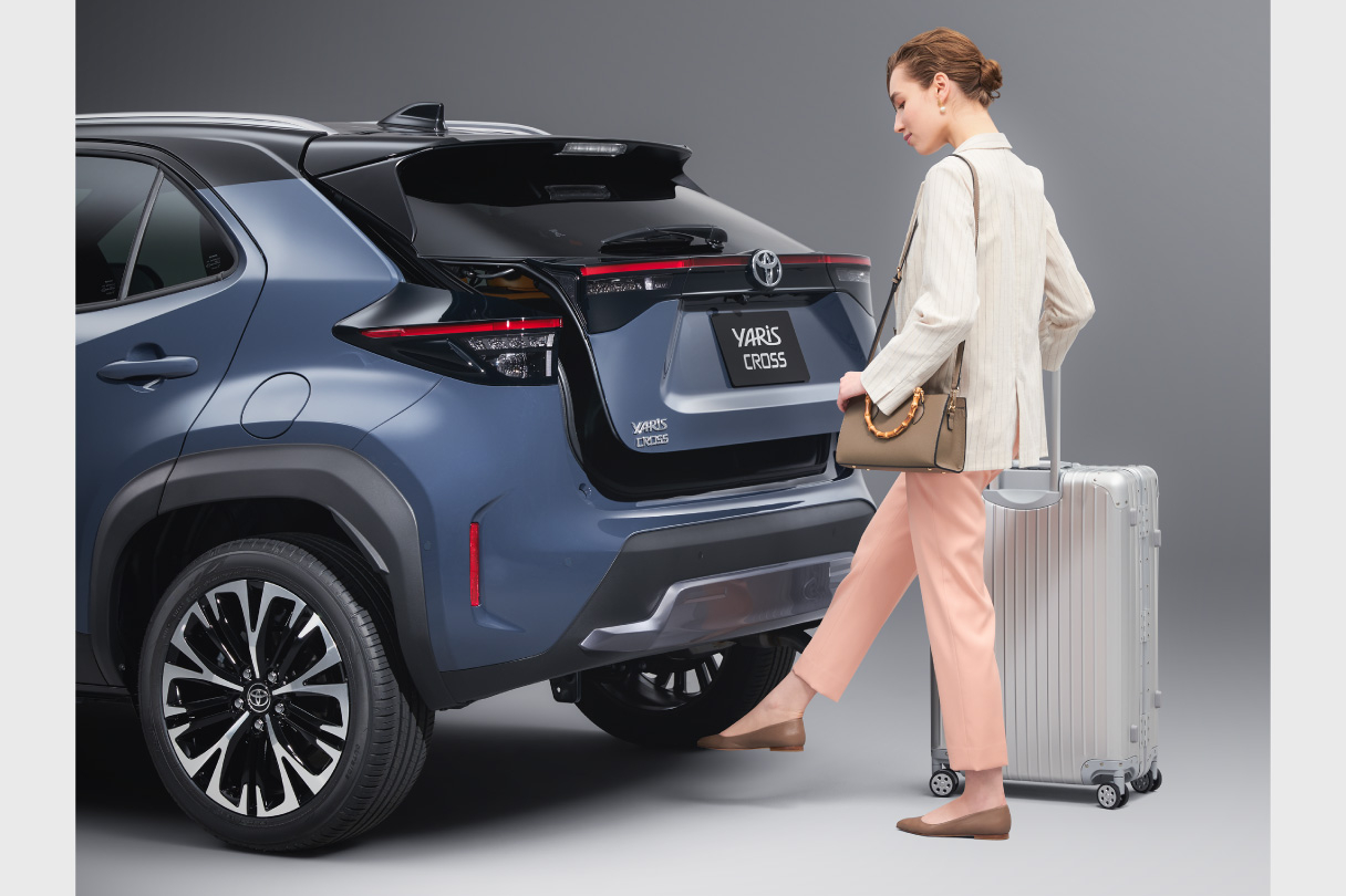 スマートキーを携帯していれば、リヤバンパーの下に足を出し入れするだけで、バックドアが自動開閉(開閉速度も向上)。両手が荷物でふさがっているときなどに、便利です。またバックドア下端部にあるスイッチでの操作も可能。停止位置の記憶、自動クローズ中の予約ロックも行えます。