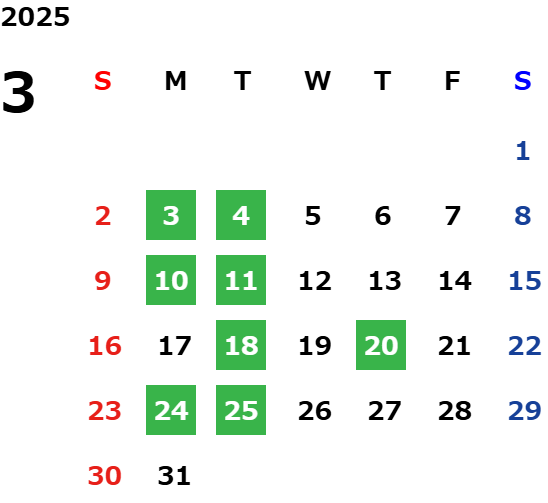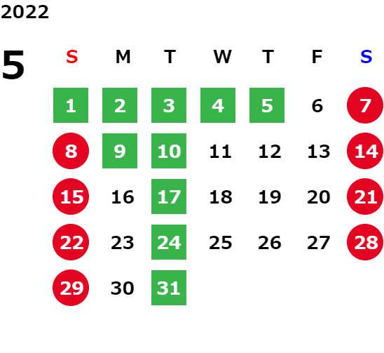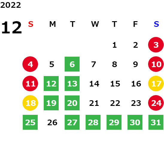 営業日カレンダー