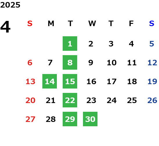 毎週火曜日は定休日になっております。